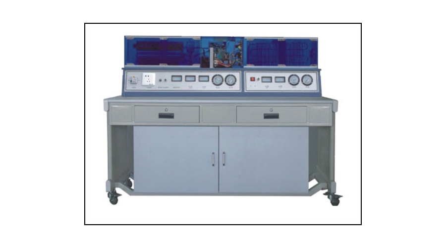 * 学生可清晰的看到整个空调器、电冰箱的工作过程 * 学生可了解压缩机的工作过程 * 教师可对各部分器件及内部结构进行讲解 * 有手控与遥控两种操作功能 * 配焊接工具、扩管器各一套 * 学生桌结构,学生桌中间铺有一层防火板,学生桌规格160×70×70㎝ * 教师台与学生桌基本相同、不同之处,增加控制台,控制每个学生桌电源 * 空调器在遥控模式下能自动开机,自动停机
