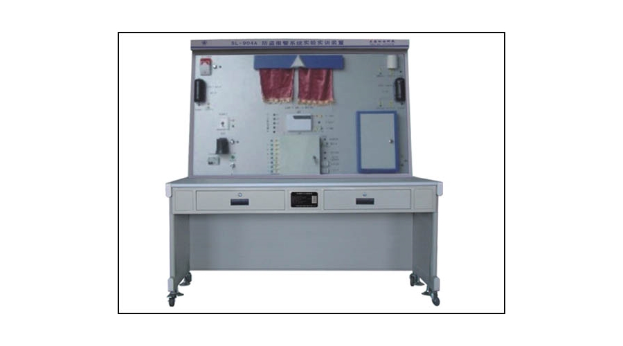 本系统全部元器件均采用实物,整个实训装置主要由幕帘探测器、红外探测器、报警主机、门磁、紧急挖掘、电话盒系统等组成。