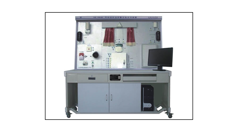 本系统全部元器件均采用实物,整个实训装置主要由幕帘探测器、红外探测器、报警主机、门磁、紧急挖掘、声光报警器、交换机、警号、Modem、光束对射控制测器系统等组成。
